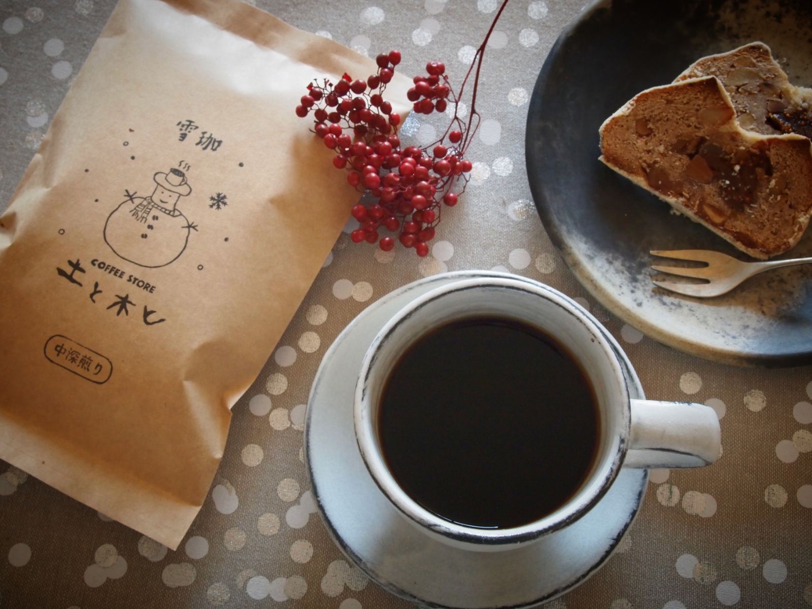 甘苦くも柔らかい、冷めても酸味や雑味が出ることがなく最後まで美味しく楽しめる、土と木とらしい珈琲です。